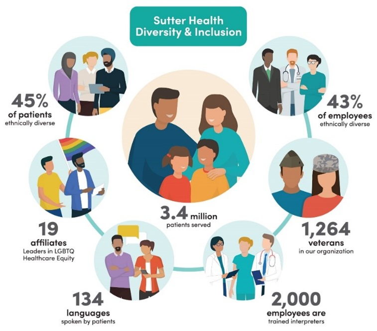 Over the last several years, Sutter has established five systemwide inclusion resource groups that represent disabled, veteran, multicultural, women and LGBTQ employees. Across the Sutter network, employees and clinicians at many care sites have their own local inclusion groups and are engaging their teammates.